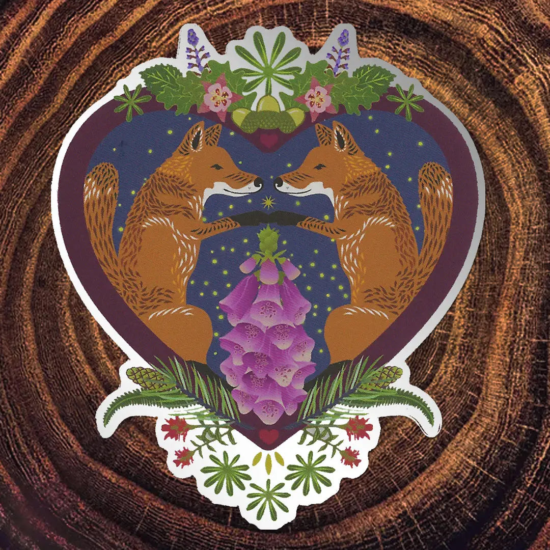 Little Gol d FoxFox Heart Matte Mirror Pvc-Free Sticker