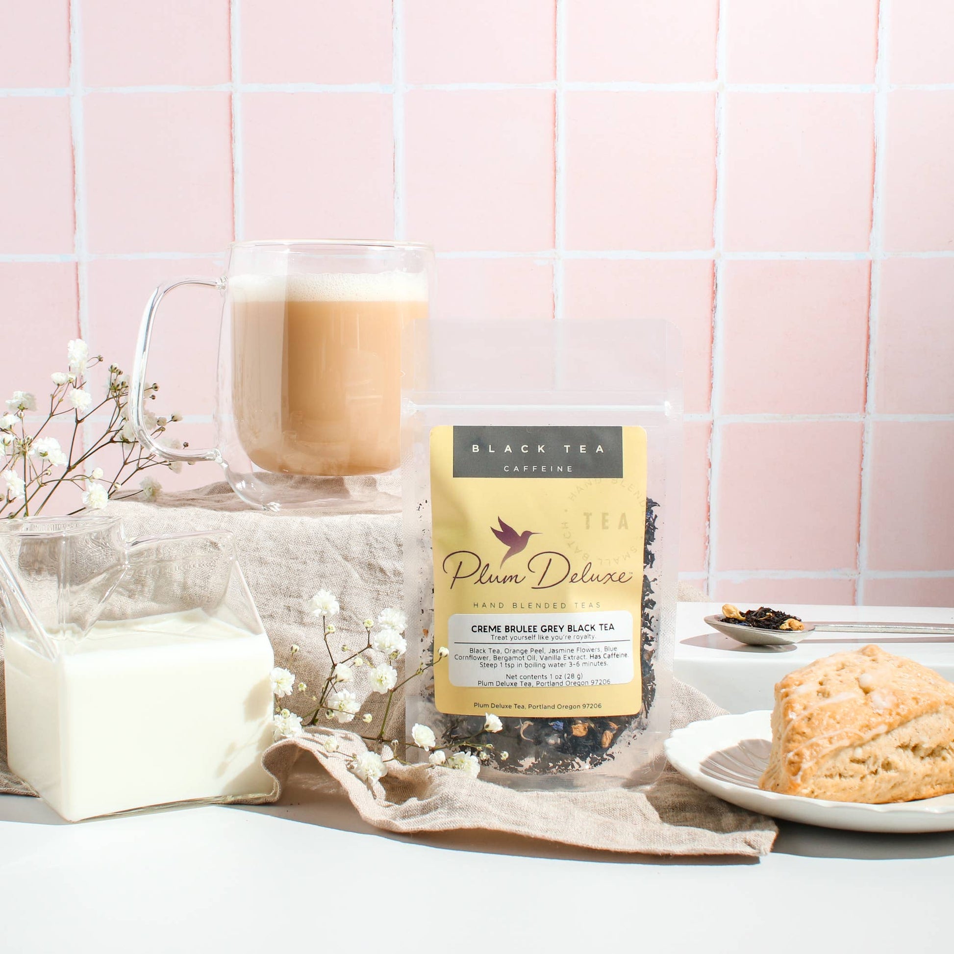 heady florals, creamy vanilla, creative moments. Available in both decaf and regular versions. Our original black tea, a best seller since our first batch in 2015. A brisk black tea (decaf available) with creamy vanilla and a floral trio of rose, lavender, and chamomile shows us a tea can be more than the sum of its parts. Pairs perfectly with creative pursuits of all sizes. Teas sold in one ounce Each oz makes 15-20 cups. Ingredients: CAFFEINE: Black Tea, Rose Petals, Lavender, Chamomile, Vanilla Essence. DECAF: Decaffeinated Black Tea, Rose Petals, Lavender, Chamomile, White Malva Flowers, Vanilla Essence.